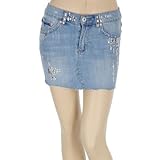 Low Waist Stretch Denim Sequined Cut Off Mini Skirt ( Choose Light or Dark Blue ) (Apparel)