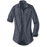 Eddie Bauer Roll Sleeve Chambray Shirt, Dark Rinse S Petite (Apparel)