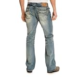 Very low rise Slim fit Bootcut leg Rank Wash Back flap pockets Stitching details 30" Inseam 100% Cotton Machine wash Men > Denim > Slim Bootcut. Read more
