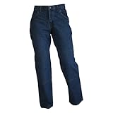 We use 14.5 ounce denim with a 13.5 ounce 100% Kevlar® lining. Our protective Kevlar® lining extends from just below the belt loops to just below the seat. It extends vertically from hip seam to hip seam. To ensure the same degree of protection as the Classic fit, the Kevlar® has been extended to wrap all the way around the knees and shins.