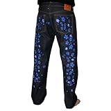 EVISU Jeans Genes Flower Daicock Mens Embroidered Flower Dark Wash Denim Jeans Pants 36" Inseam (Apparel)