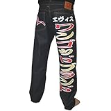 EVISU Jeans Genes Tobari Mens Urban Premium Dark Wash Relaxed Loose Fit Denim Pants Jeans (Apparel)
