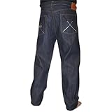 Evisu's premium denim line continues to sit at the helm of premium denim brands reinforced with its superior quality and unique style. These jeans feature a loose fit, contrast stitching, a button fly, a leather patch sewn on the waistband and the metallic embroidered Katana design on the back. 100% Cotton. Machine wash, tumble dry. Size 42= Waist 42", Inseam 37.5", Rise 13", Leg Opening 9" (Laying Flat). Style # EAU08HMJE13 D330. Read more
