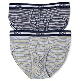 Uncomplicated guys need a practical and economical choice....enter the Levi's Original Low-Rise Briefs (2-Pack). Made of 100% cotton, these briefs are the perfect choice for everyday wear. Available in two fantastic striped color combinations, one brief is navy with white, yellow and grey stripes and the other is grey with yellow, navy and blue stripes. The comfortable elastic waistband sports the famous 'Levi's' logo. The double-layered contour pouch is designed for comfort. Levi's makes these briefs available in convenient, economical packs of two. Perfect for guys who want the comfort and support of stylish briefs without breaking the bank! Specifications: Made of 100% soft cotton. The sides measure approximately 3.5" from the top of the waistband to the bottom hem. The back has full coverage with no seam. Available in Surf and Wave Stripe. Two briefs per pack. Sizes: S, M, L Read more